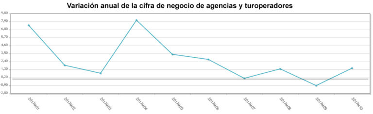 La cifra de negocio de las agencias de viajes se estanca en la segunda mitad del año. Después de haber crecido un 4% en los seis primeros meses, en el periodo comprendido entre julio y octubre experimenta un tímido aumento interanual del 0,5%, según el Instituto Nacional de Estadístico (INE). Por tanto, a la espera de saber cuál es el comportamiento en noviembre y diciembre, todo parece indicar que en el segundo semestre se producirá una clara ralentización.