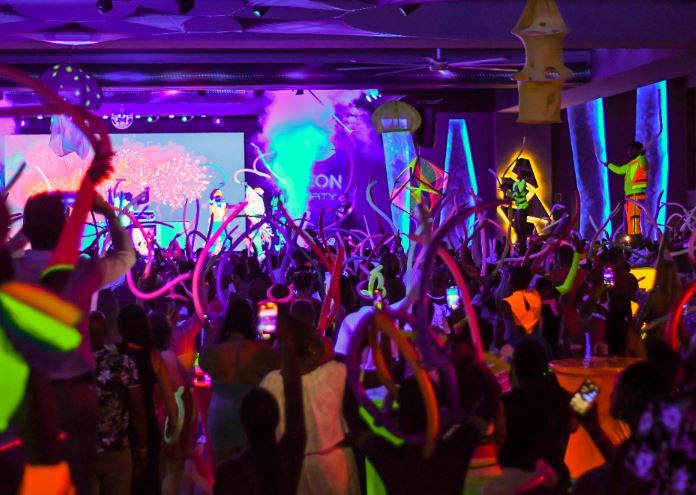 La puesta en escena de la primera fiesta contó con luces fluorescentes, música, bailarines, performances y momentos con efectos especiales y coreofrafías. Las Riu Party