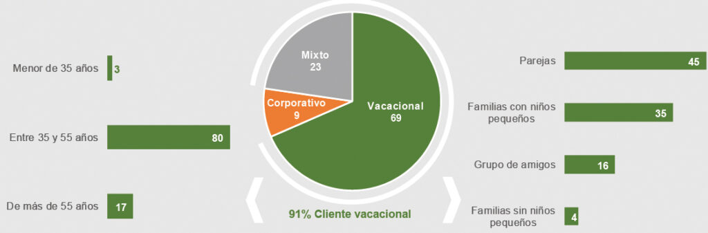A pesar de la creciente importancia del business travel para las agencias de viajes, tan solo un 9% de los profesionales consultados afirma dedicarse en exclusiva a este segmento. En cambio, un 91% da servicio al cliente vacacional. De este porcentaje, un 69% lo hace en exclusiva, mientras que un 23% se califica como agencia de viajes mixta (vacacional y corporativa).