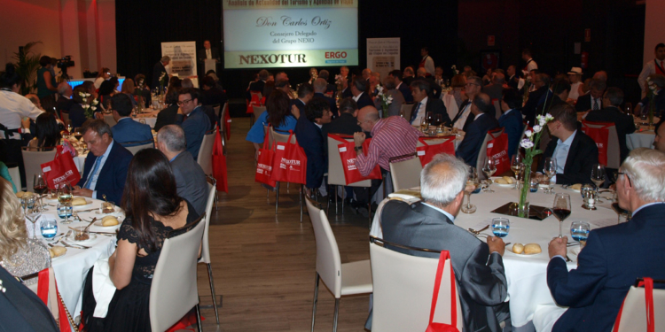 El Marriott Madrid Auditorium Hotel & Conference Center ha albergado este jueves 27 de junio una gran cena de gala, en cuyo marco se ha presentado la obra del director de NEXOTUR, Eugenio de Quesada, titulada ‘Análisis de Actualidad del Turismo y Agencias de Viajes’, formada por 12 volúmenes (de 500 páginas cada uno), que reproducen en más de 6.000 páginas las Portadas, Editoriales, Check-in, Check-out (elogios y críticas) y Personajes de la semana de 1.100 ediciones. Un cuarto de siglo de Historia del Turismo en España.