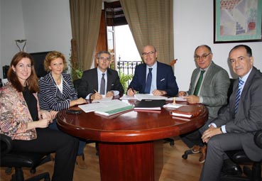 El delegado de Conocimiento y Empleo de la Junta de Andalucía en Córdoba, Manuel Carmona, y el representante de la UTE ‘Palacio de Congresos de Córdoba S.L. y Marva S.A.’, Juan Salado, han firmado esta semana el contrato de concesión que da las llaves a esta firma cordobesa y madrileña para empezar con la gestión del Palacio de Congresos de la calle Torrijos.