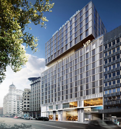 La apertura del VP Plaza España Design está prevista para principios de este año 2018. Contará con 17 plantas sobre rasante, 4 bajo rasante y una superficie de 25.343 metros cuadrados, que albergará un total de 214 habitaciones de 9 categorías diferentes.