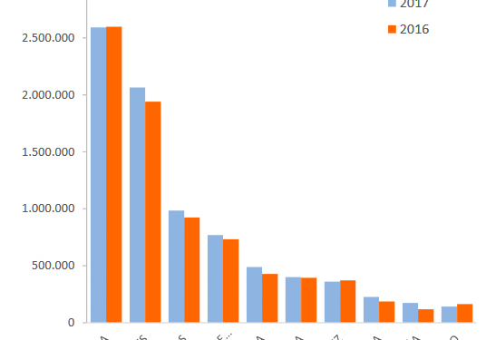 La tercera posición es para Las Palmas con 985.662 viajeros, un 6,7% más que en 2016, mientras que Santa Cruz de Tenerife figura en cuarto lugar con 769.176 y un repunte del 5%. En conjunto, los puertos españoles alcanzan entre enero y noviembre la cifra récord de 8,5 millones de pasajeros de cruceros, lo que supone un crecimiento interanual del 4,3%. Han atracado en ellos 3.918 barcos de cruceros, un 7,6% más que en los 11 primeros meses de 2016, cuando lo hicieron 3.640.