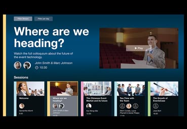 Para ello, EventsCase ha desarrollado dentro de su plataforma un nuevo interfaz que permitirá pasar de los eventos tradicionales a esta nueva versión de un modo inmediato, ágil e intuitivo. En este sentido, los organizadores del evento solo tendrán que añadir el enlace al webinar o streaming en cada sesión de la agenda. Este link aparecerá tanto en la app como en la web como un botón de ‘(Play) live‘.