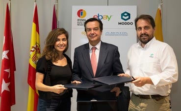 El director general de Ifema, Eduardo López-Puertas; la directora general de eBay en España e Italia, Susana Voces, y el fundador y CEO de Moddo, Diego de Vicente, han firmado este acuerdo que se enmarca dentro del proceso de digitalización de la institución ferial.