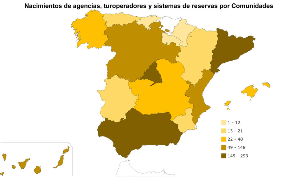 De los informes publicados por el INE, que empieza a recopilar estos datos en 2008, tan solo en dos años se ha producido un descenso del número de empresas dedicadas a la distribución turística. El último corresponde a 2012, cuando se contabilizaron 1.156 aperturas y 1.245 cierres (-7,1%). La caída fue mayor en 2009 (-16,3%), con 1.156 ceses de actividad por tan solo 967 nacimientos.
