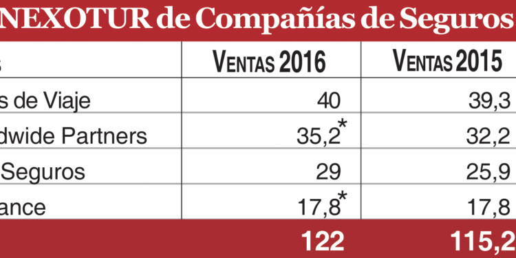 La reactivación generalizada que viene experimentando el consumo de viajes en el mercado español se traslada a la cifra de negocio de las grandes compañías de seguros. Según los datos recabados por NEXOTUR, las cuatro empresas punteras en el segmento de las pólizas de viajes alcanzan un volumen de negocio conjunto de 122 millones de euros en el global de 2016. Se trata de un significativo aumento interanual del 5,9%, el cual contrasta con el estancamiento que experimentaron en 2015 (+0,4%), cuando su volumen de negocio se situó en 115,2 millones.