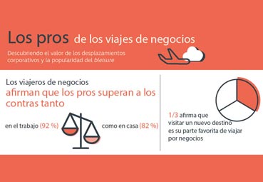 Los viajeros de negocios de todo el mundo destacan los beneficios de los desplazamiento por motivos laborales. Según un informe de CWT, los pros superan a los contras tanto en el trabajo (92%) como en casa (82%). En este sentido, los viajeros de América son los más entusiastas con un 94% y un 86%, respectivamente, seguidos de los viajeros de Asia-Pacífico, con un 93% y un 84%, y los de Europa, con un 89% y un 77%.