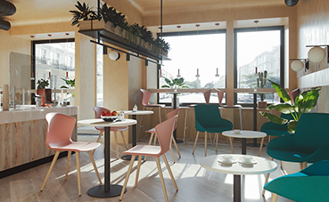 Pensando en esta etapa post Covid-19, los hoteles están ya adaptándose a esta nueva normalidad y adoptando medidas concretas, como marcar las zonas de espera frente a los mostradores, disponer mamparas fáciles de instalar y de limpiar. Delimitar los flujos de personas en estos espacios de forma visual, diferenciar las entradas de las salidas y reducir tiempos de espera a través de la gestión online, junto con medidas específicas de desinfección e higiene, son una forma de reducir los contactos interpersonales. Pero también resulta interesante escoger opciones de equipamiento móviles de manera que el espacio pueda reconfigurarse en función de las necesidades que surjan, favoreciendo la versatilidad que demandan estos entornos.