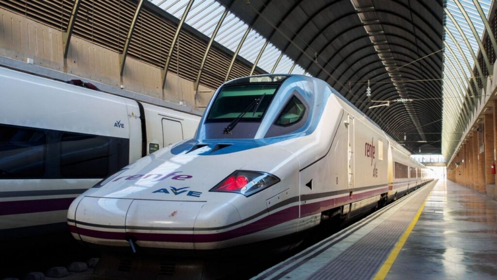 Tren AVE de Renfe en la estación de tren.