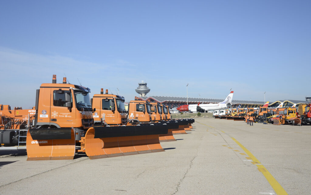 Para esta campaña, en la que el presupuesto ascenderá a 2,3 millones, Aena dispone de más de 100 vehículos propios destinados a la retirada de nieve y hielo, así como otros implementados con cuchillas y esparcidores de urea. Además, sus instalaciones cuentan con una capacidad de almacenamiento de fundentes propios de más de 450 toneladas. Los aeropuertos incluidos en el plan de invierno son: Albacete, Barcelona-El Prat, Bilbao, Burgos, Girona-Costa Brava, Federico García Lorca Granada-Jaén, Huesca-Pirineos, León, Logroño-Agoncillo, Adolfo Suárez Madrid-Barajas, Madrid-Cuatro Vientos, Palma de Mallorca, Pamplona, Salamanca, San Sebastián, Santiago, Valladolid, Vitoria y Zaragoza.
