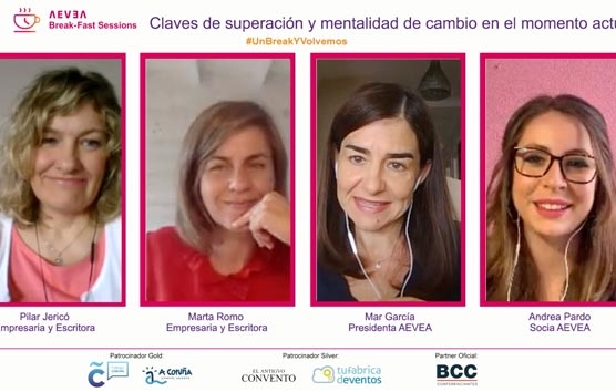 Andrea Pardo, socia de AEVEA, moderó el encuentro y tras la receta de desayuno de Daniel Napal, chef creativo de El Antiguo Convento, les trasladó a Pilar y a Marta lo importante que es la capacidad de superación, de resiliencia, de mentalidad de cambio en este momento Para Pilar Jericó este parón supone una oportunidad para reinventarse, para desarrollar creatividad y mentalidad de cambio para las organizaciones y los profesionales. Marta Romo considera que todos tenemos una gran capacidad de adaptación pero la clave está en aprender y hacernos fuertes eligiendo vivirlo como protagonistas y no como víctimas.