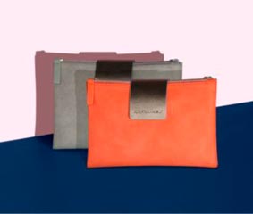 Pa ra la clase Business, se ha creado un neceser en cuatro colores (azul, gris, naranja y turquesa) y cuenta con dos bolsillos de ante con cremallera metálica unidos por una solapa de cuero liso y brillante. El nuevo neceser incluye una crema hidratante Clarins, un bálsamo labial reparador Clarins, un kit completo de higiene dental, una máscara para dormir, tapones, un peine y un calzador.