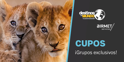 Nos complace anunciar la nueva campaña junto al proveedor Destinos del Mundo. Esta iniciativa trae una serie de destinos fascinantes y cupos exclusivos para los viajeros que buscan experiencias inolvidables en algunos de los lugares más emblemáticos del mundo. Como Kenya, Tanzania, Túnez, India, Japón, Tailandia, Vietnam y Camboya, Perú, Colombia y Argentina.