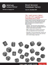 Jon Hubbard, consejero delegado de Jones Lang LaSalle Hotels para el norte de Europa, ha explicado que "la encuesta indica que la confianza en el sector inmobiliario hotelero se está manteniendo en un buen nivel, a pesar de los problemas económicos de Europa. La tasa de capitalización exigida se mantiene firme en una media del 7,2%, con rentabilidades más atractivas en mercados de entrada como París, Londres y las principales ciudades alemanas, donde la feroz competencia entre los compradores ha impulsado los precios hasta niveles máximos. La tasa interna de rentabilidad exigida también varió considerablemente, registrando una contracción de 170 puntos básicos hasta llegar al 13,7%, lo cual refleja el gran interés de los inversores en el sector europeo de los inmuebles hoteleros".