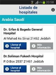 My travel Doctor pone a disposición del usuario numerosas opciones que le ayudarán a entender y buscar términos médicos en diferentes idiomas, encontrar hospitales en cualquier lugar del mundo, números de teléfono de emergencias y explicación de medicamentos… Con esta aplicación el viajero podrá resolver dudas, consultar términos médicos… en cualquier lugar del mundo.