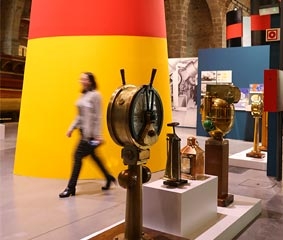 La exposición creada por APD para Trasmediterránea alberga un área expositiva de 480 metros cuadrados y se caracteriza por un diseño escenográfico de carácter inmersivo y emocional que permite un acercamiento experiencial del visitante a la historia de Trasmediterránea mediante la combinación de recursos escenográficos que realzan las piezas expuestas.