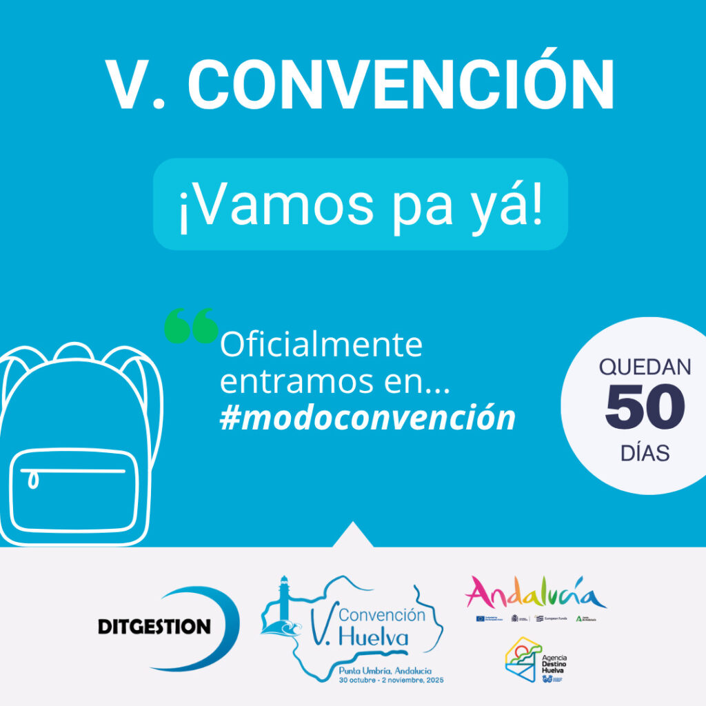La cuenta atrás continúa. En apenas 50 días, DIT Gestión celebrará su V Convención, un encuentro muy esperado por todas sus agencias asociadas que en esta edición tendrá lugar en Punta Umbría (Huelva), del 30 de octubre al 2 de noviembre.