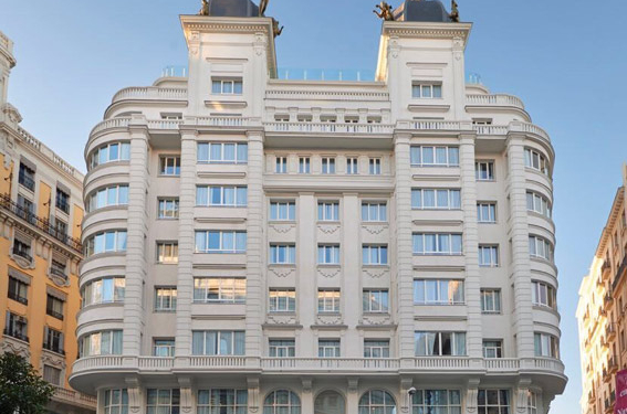 Con una ubicación estratégica en pleno centro de la capital madrileña, el nuevo Hyatt Centric Gran Via Madrid ofrece un total de 159 habitaciones, 16 de las cuales son suites. El interior del establecimiento ha sido decorado con piezas inspiradas en la cultura española, como guitarras y estampado de pata de gallo en las cortinas y alfombras. Un total de 30 millones de euros han sido invertidos por la cadena en la remodelación del edificio.