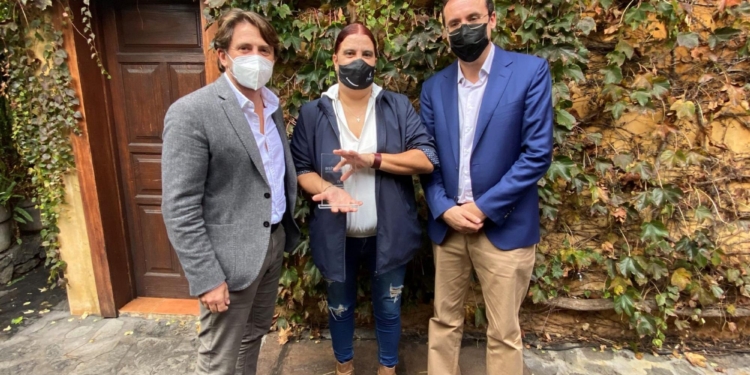 El presidente de Ashotel, Jorge Marichal, hizo entrega de una placa que recogió en nombre de los trabajadores y trabajadoras del sector Xiomara Curbelo, integrante del equipo de cocina del hotel La Palma & Teneguía Princess, acompañada del vicepresidente de Ashotel en La Palma, Carlos García. Curbelo manifestó su agradecimiento en nombre de todas las personas a las que representa en esta ocasión y se mostró optimista en la recuperación del turismo en la isla, una vez cese la erupción.
