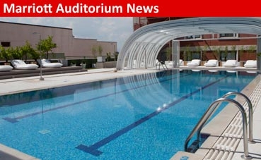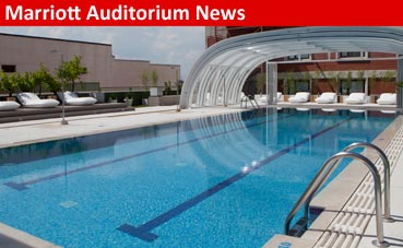 Un lugar único con un techo panelable que se abre ya al verano para disfrutar de los meses estivales sin echar en falta arena y olas. La piscina de Madrid Marriott Auditorium cuenta con un espacio para tomar el sol, de estilo moderno y abierto de 7.00 de la mañana a 21.00 horas de la noche, convirtiendo este rincón del hotel en la manera ideal de acorralar las altas temperaturas.