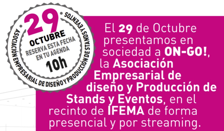 La Asociación Empresarial de Diseño y Producción de Stands y Eventos ON-GO!, con la colaboración de Ifema y las empresas Mediapal, Pelícano y Coptercam, hizo su presentación oficial. La sesión se desarrolló en un formato híbrido (tanto online como presencial) para que los asistentes pudieran conocer de primera mano las características del proyecto que acaba de nacer. Se habló del origen, los valores, la misión, los objetivos y las reivindicaciones de este sector.