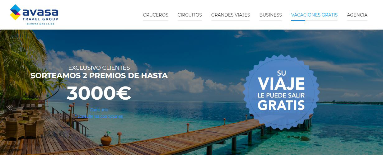 El premio consiste en que el importe del viaje premiado que va asociado a un cliente se le mantiene como depósito para el siguiente viaje, a reservar en la misma agencia en la que adquirió el viaje premiado.