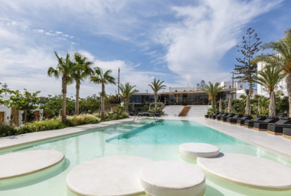 La compañía espera una facturación de dos millones de euros para este 2025, una cifra destacada para un hotel boutique de 31 habitaciones y de carácter estacional, dado que abre de mayo a octubre. Sus 31 habitaciones son fieles al estilo griego de la isla y algunas disponen de balcón con vistas a la piscina, mientras otras cuentan con terraza y piscina privada.