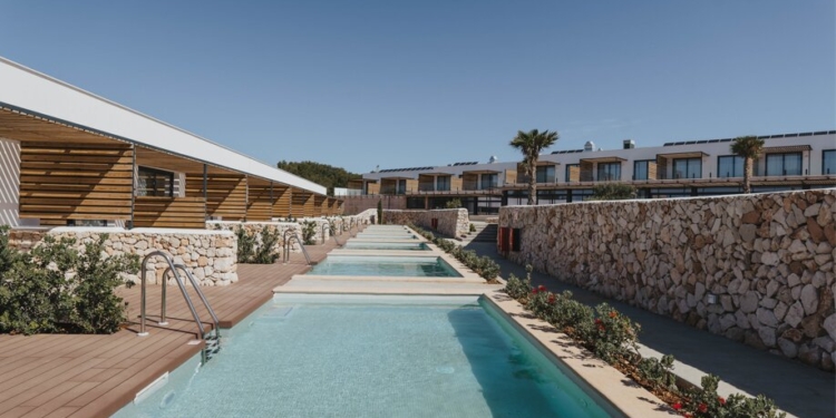 Valorado en más de 20 millones de euros, este hotel de nueva construcción cuenta con 128 habitaciones, de las cuales 45 de ellas tienen acceso directo a piscinas semiprivadas. El conjunto arquitectónico está formado por un amplio solárium, tres piscinas y dos restaurantes para disfrutar de la gastronomía menorquina, donde todos los platos inspiran tradición y respeto por la tierra.