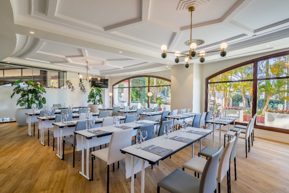 Durante los últimos meses Barceló Marbella ha acometido una minuciosa renovación de sus 1.200 metros cuadrados de salones, cuidando todos los detalles de su diseño para ofrecer el máximo confort durante los eventos. Dos de sus salones, ubicados en la cuarta planta del hotel, cuentan con unas espectaculares vistas al campo de Golf de Guadalmina y a la montaña de la Concha, mientras que los tres salones de la planta de recepción se caracterizan por una luz natural que resulta muy agradable para este tipo de encuentros profesionales.