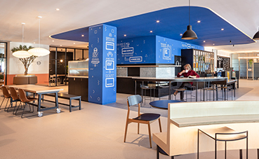 De esta forma, B&B Hotels ha creado un espacio bajo el concepto de coworking y coliving pensado especialmente para sus huéspedes. Este lobby se convierte tanto en punto de encuentro como en un lugar tranquilo en el que trabajar, hacer networking, compartir experiencias con otros coworkers, leer, tomar un café o disfrutar en el buffet de un aperitivo.
