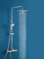 La grifería termostática es el elemento más destacado del conjunto, ya que aúna funcionalidad, ergonomía, confort y seguridad de uso. Dispone de un sistema limitador de temperatura que permite al usuario elegir la temperatura exacta que desea en cada momento, sin experimentar variaciones en la misma aunque se abra y cierre el grifo o se varíe su caudal.