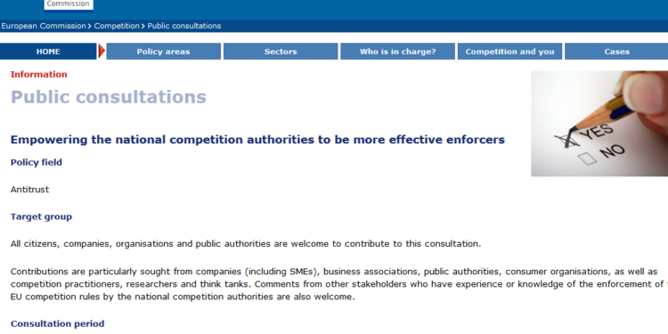 En concreto, Bruselas quiere consultar si hacen falta propuestas normativas a nivel europeo para reforzar a las autoridades de competencia. Para enviar las opiniones, ha creado la página web Consulta Empowering NCAs. Los participantes podrán remitir sus aportaciones hasta el 12 de febrero de 2016, momento en que la Comisión examinará el resultado y decidirá si es necesario tomar alguna medida.