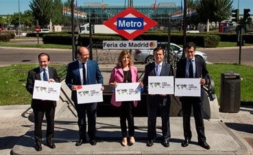El consejero de Transportes, Vivienda e Infraestructuras, Pedro Rollán, junto a la consejera de Economía, Hacienda y Empleo, y presidenta de la Junta Rectora de Ifema, Engracia Hidalgo, han hecho este anuncio en un actos en el que han estado acompañados por el viceconsejero de Transportes, Jesús Valverde; el director general de Turismo de la Comunidad de Madrid, Carlos Chaguaceda; el director general de Ifema, Eduardo López-Puertas, y el consejero delegado de Metro de Madrid, Borja Carabante.