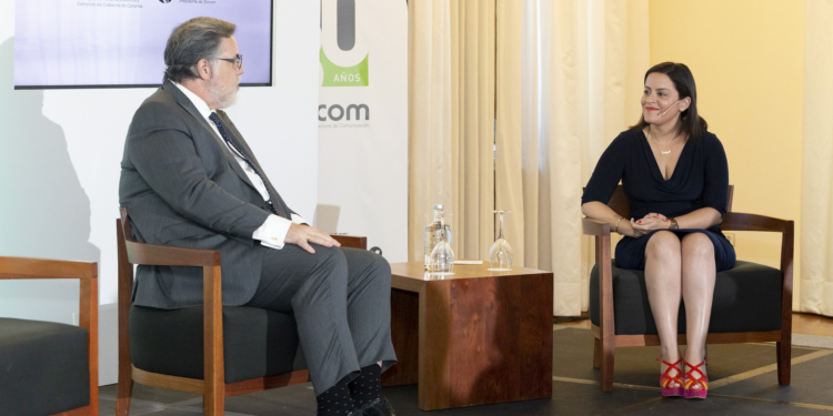 Para concluir la jornada, Yaiza Castilla, consejera de Turismo, Industria y Comercio del Gobierno de Canarias, y Miguel López-Quesada, presidente de Dircom, iniciaron el debate sobre Turismo y Comunicación. Castilla se refirió a la importancia de la comunicación en el conocimiento del destino, al tiempo que identificó la innovación y la tecnología de datos como herramienta para la personalización y el posicionamiento de Canarias. También se refirió al papel de la formación de profesionales altamente cualificados y felices que favorezcan las experiencias auténticas que el visitante busca, más allá de lo puramente alojativo. En este mismo sentido, López-Quesada concluyó con la necesidad de legitimar y poner en valor a un sector que ejerce de transformador de los pueblos en los que opera, y subrayó el poder de la comunicación como un elemento imprescindible para pasar de contar las cosas a hacer que las cosas pasen.