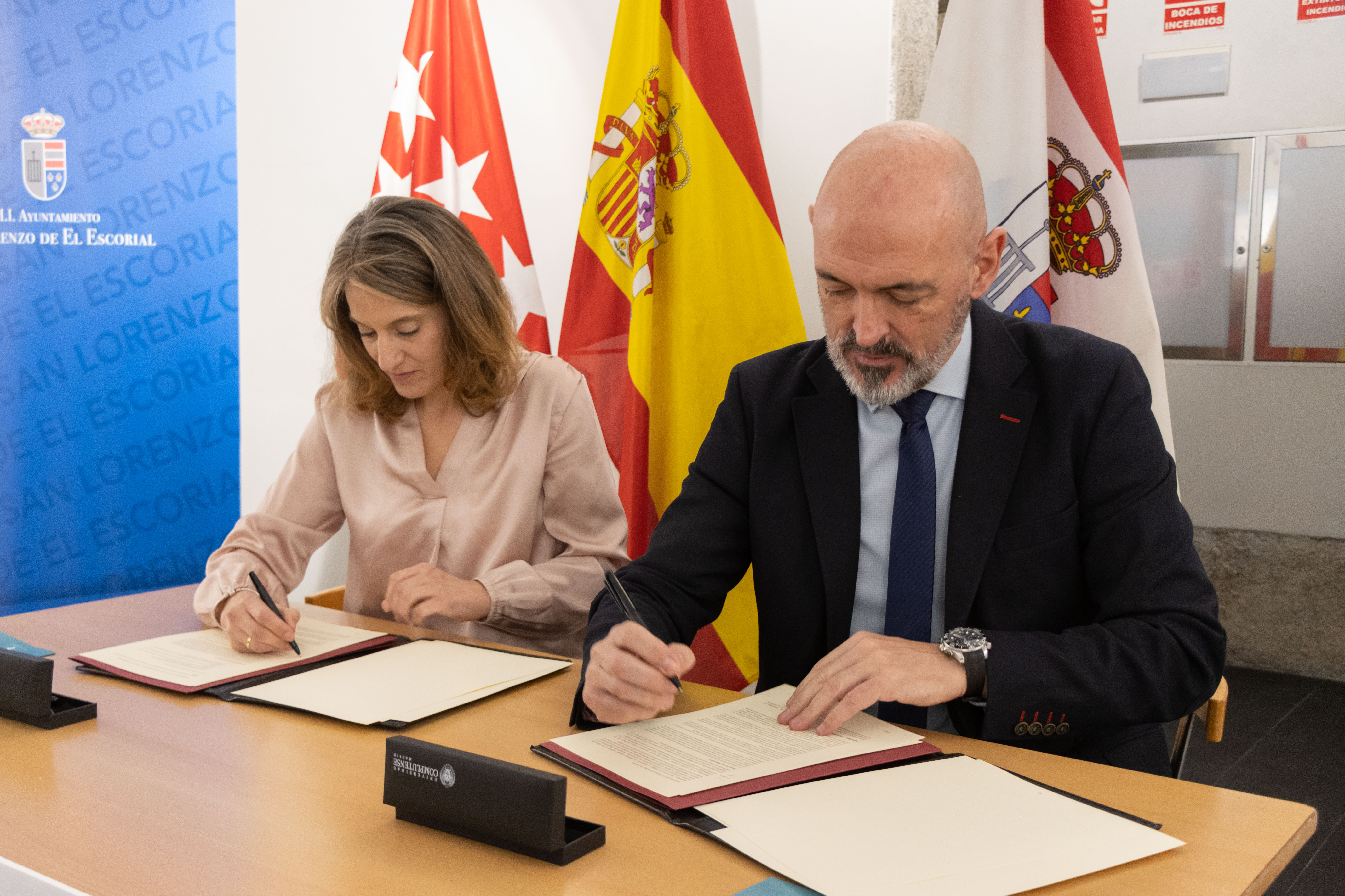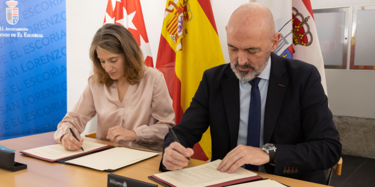La alcaldesa de San Lorenzo de El Escorial, Carlota López Esteban, y el rector de la Universidad Complutense de Madrid (UCM), Joaquín Goyache Goñi, han presentado la Cátedra de Desarrollo Turístico Sostenible.