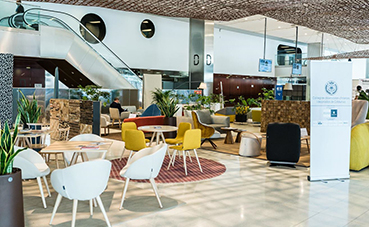 El diseñador ha creado un espacio vinculado a la salud y al deporte. Se trata de un lobby con formas orgánicas que transmiten el movimiento y el dinamismo de una persona física y socialmente activa. Las formas curvas crean, a modo de yin y yang, un orden en el que, en cada uno de los giros se estructuran y complementan recepción, sala de estar y un espacio de co-working. Todos ellos son espacios para la interacción.