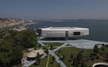 Con una superficie construida total de 10.285 metros cuadrados, el Centro Botín está ubicado en un enclave privilegiado de Santander y rescata para la ciudad el antiguo parking del Ferry. El edificio, situado en voladizo sobre el mar, está revestido por 270.000 piezas circulares de cerámica nacarada que reflejan la luz y los colores cambiantes del mar y del cielo. Articulado en dos volúmenes, el oeste dedicado al arte y el este a las actividades culturales y formativas, el edificio cuenta con dos amplias salas de exposiciones (2.500 metros cuadrados en su conjunto), un auditorio para 300 personas, aulas formativas, área de trabajo, un restaurante llamado ‘El Muelle’ y dirigido por el chef dos estrellas Michelin Jesús Sánchez, una tienda y una azotea que ofrece una nueva mirada a la ciudad y a la bahía.