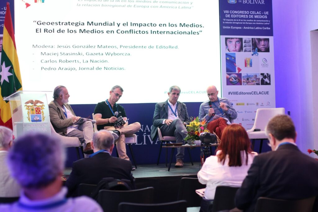 El primer panel abordó el impacto de la geoestrategia en los medios. Maciej Kowalski, editor de «Gazeta Wyborcza», alertó sobre la desinformación y el control de la opinión pública por grandes consorcios, mientras que Carlos Roberts, del diario «La Nación», destacó el papel esencial del periodismo en tiempos de polarización. Por su parte, Pedro Araújo, de «Jornal de Notícias», advirtió sobre el uso de la información como arma política en un contexto de cambios de liderazgo y tensiones internacionales.