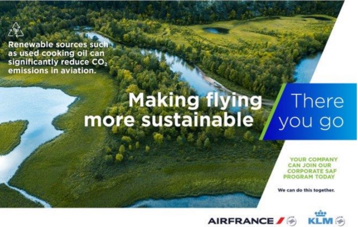 Su uso puede reducir las emisiones en más de un 85% en comparación con el combustible convencional. Actualmente el principal desafío es el desarrollo de una industria sostenible a la que los clientes corporativos de Air France y KLM puedan hacer una contribución concreta. En un momento en el que la toma de conciencia sobre los problemas climáticos está en el centro de la estrategia de muchas empresas, el programa SAF Corporate ofrece a los clientes de empresa de Air France-KLM la oportunidad de formar parte activa de la reducción de emisiones de CO₂ en el marco de sus viajes de negocios. «Air France y KLM trabajan desde hace años para reducir su impacto medioambiental», ha afirmado Henri de Peyrelongue, director general del área Comercial y Ventas de Air France-KLM. «El lanzamiento del programa SAF Corporate es una prueba más del fuerte compromiso que nos lleva hacia acciones concretas. A través de su contribución, nuestros clientes corporativos serán los socios del mañana en una transición energética que puede estar en línea con su política de viajes más ecoresponsable.