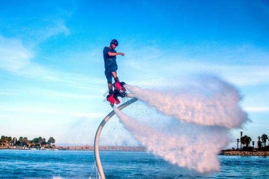 Por su parte, el flyboard se ha convertido también en una atracción turística gracias a lo emocionante que resulta, pues consiste en una tabla unida a unbas botas a chorro que, al conectarse a un tubo que bombea agua a alta presión, permite al usuario literalmente volar sobre la superficie del agua. La potencia de una moto acuática es lo que le da impulso al flyboard para así lograr elevarse, generando una experiencia totalmente segura en la que solo hace falta algo de valor y mucho equilibrio.