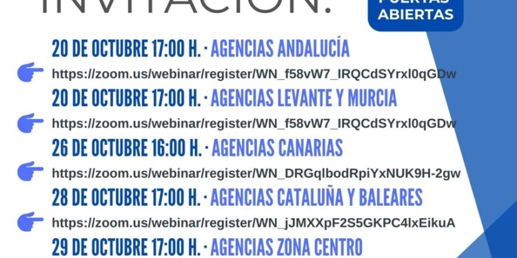 Estas jornadas virtuales se han organizado por zonas, y se celebrarán a lo largo de esta semana y la próxima. Así, las agencias de Andalucía, Comunidad Valenciana y Murcia tuvieron su cita el pasado martes 20 de octubre.