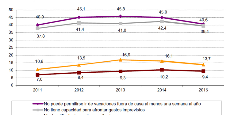 El 40,6% de los españoles no se puede permitir ir de vacaciones fuera de casa al menos una semana al año. Según se desprende de la Encuesta de Condiciones de Vida (ECV), realizada en la primavera de 2015 por el Instituto Nacional de Estadística (INE), pese a lo elevado del porcentaje, es significativamente inferior en comparación con el registrado un año antes. Y es que en 2014 un 45% de la población aseguró no tener capacidad económica para realizar un viaje.