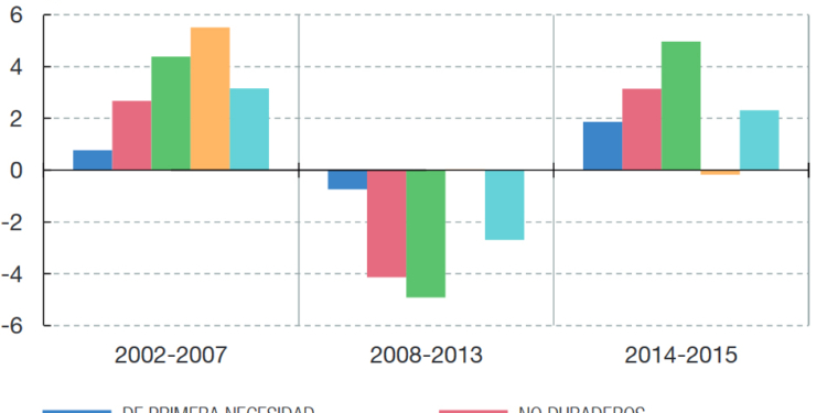Se trata de una décima más que la variación media registrada en el periodo 2006-2007, cuando el consumo aumentó un 4,1%. Mientras tanto, entre 2008 y 2013, sin duda los años más duros de la crisis económica, sufrió un retroceso medio del 5,1%.