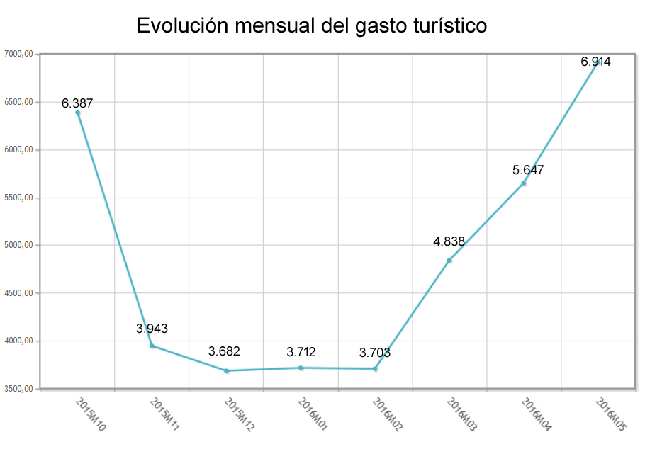 Sin embargo, el gasto por viajero experimenta un significativo descenso del 4,1% en comparación con el mismo periodo de 2015, situándose en 984 euros. Detrás de este comportamiento negativo está la reducción del 5,6% de la duración de los viajes, que se sitúa en 7,6 noches. En cambio, el desembolso medio diario experimenta un ligero incremento del 1,6%, ascendiendo a 130 euros.