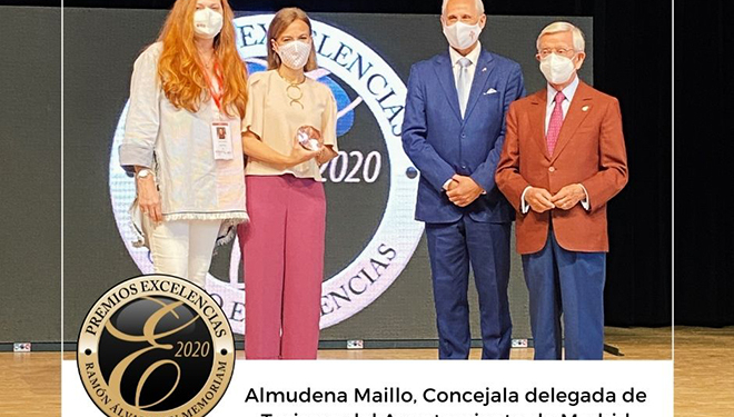 El pasado 19 de mayo, en el marco de Fitur, el Ayuntamiento de Madrid representado por Almudena Maillo, Concejala Delegada de Turismo, recibió el premio Excelencias Ramón Alvarez in Memoriam, galardón que se entrega cada año a una entidad o personalidad por sus aportes al desarrollo del turismo MICE.
