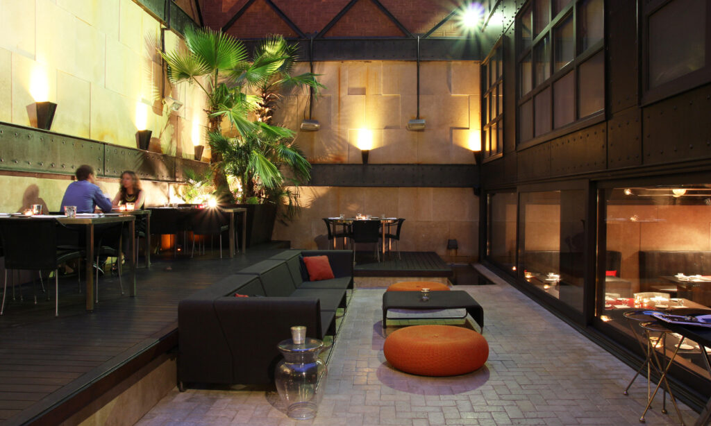 El patio interior del hotel es un espacio privilegiado en el que cenar al aire libre o culminar la sobremesa. Con el encanto del arte hindú en sus paredes, este patio de isla del Eixample se convierte cada día en un oasis de paz en una de las zonas comerciales más vibrantes de Barcelona.
