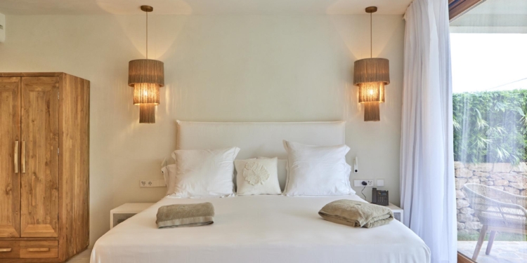 Las cuatro categorías de este alojamiento brindan una experiencia vacacional de excelencia. Las suites son amplias, luminosas y están elegantemente decoradas. Cada detalle evoca la esencia de las playas y el lecho marino de Formentera. Colores cálidos, tonos turquesa, conchas y materiales naturales como madera, piedra y yute te transportan a un auténtico paraíso mediterráneo.