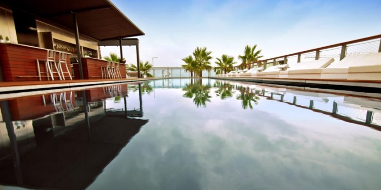 Situada en la planta 27 y a más de 100 metros de altura, la terraza mirador El Cel sorprende por su privilegiada ubicación, sus inmejorables vistas panorámicas sobre la ciudad de Barcelona y su espectacular y original piscina negra de 21 metros.