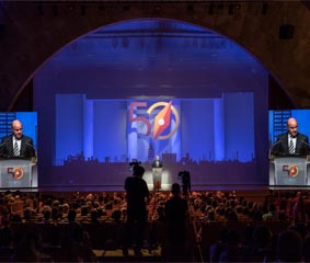 Heinz Haller, vicepresidente ejecutivo y presidente de Dow para Europa, Oriente Medio, África e India (EMEA), acompañado por Anton Valero, director general de Dow Ibérica, y Jaume Sariol Martí, director del Complejo Industrial de Dow Tarragona, fueron los encargados de dar la bienvenida a los más de 1.200 asistentes al acto. Entre los asistentes se citaron empleados y ex empleados de la compañía en España, representantes de empresas con las que Dow trabaja o ha trabajado en los proyectos realizados durante sus 50 años de historia en la región, clientes, representantes de otras grandes empresas de la industria, así como de la comunidad local, asociaciones, instituciones y Administración pública.